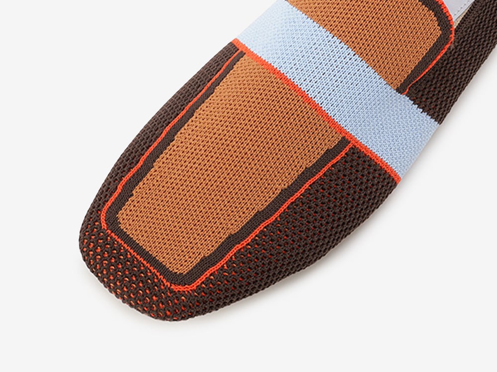 まるでカラフルなローファーを履いているようなトロンプユイユデザインで仕立てた一足。アクセントカラーをポイントにしながらも装いに馴染むようなベーシックカラーを主にした絶妙な配色で、大人の品はキープ。ユニークさと知的なムードを両立したデザインで足元から楽しげに。