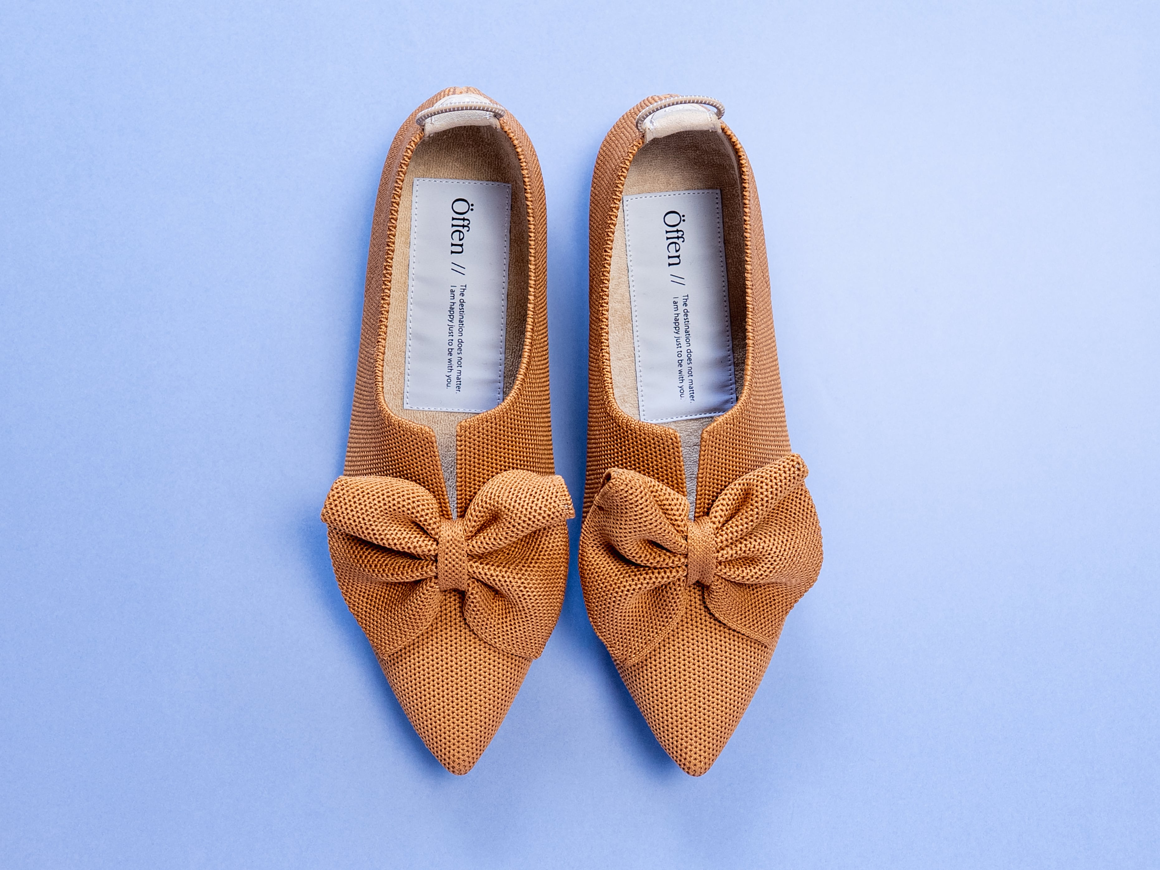 羽根を広げて優雅に空を舞うバタフライを思わせるような立体感のあるリボンデザインが足元を華やかに彩るポインテッドシューズ。カラーにはシックなキャメルを採用し甘さを軽減、コンフォートシューズに見えない洗練感を演出しました。デイリーにもセミオケージョンにも馴染む一足です。
