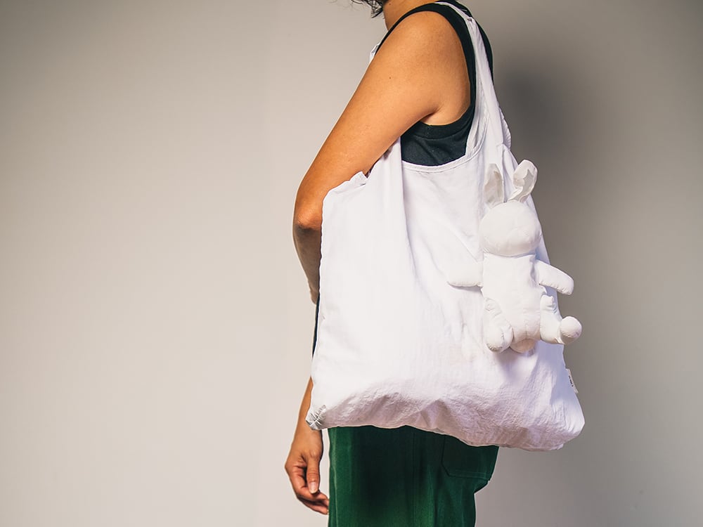 秋の訪れを感じるお月見をイメージした、うさぎモチーフのエコバッグが限定登場! 耳はÖffen定番のスカラップデザインになっています。 <品番> O25FBG-4002-05 <カラー> WHITE ※ホワイトのみの販売です <素材> 再生ポリエステル