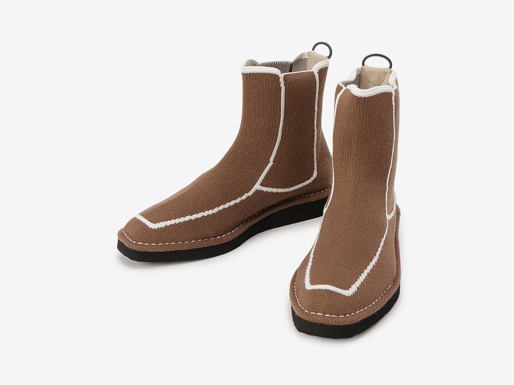 ブーツスタイルにコンテンポラリーなスクエアトゥを組み合わせた一足は、シックなカラーリングにホワイトのパイピングを効かせて大人の遊び心を忘れずに。