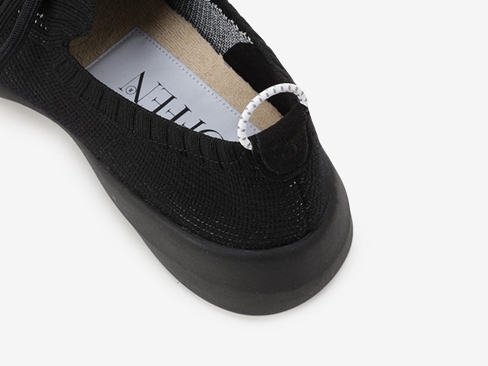 素材には、使用済みのペットボトルから生まれたリサイクル糸を採用。軽量でクッション性のあるニット素材は、足入れのしやすさや歩きやすさも抜群で、まるで裸足のような履き心地。環境に配慮するだけでなく、心や体への“心地よさ”にもこだわりました。