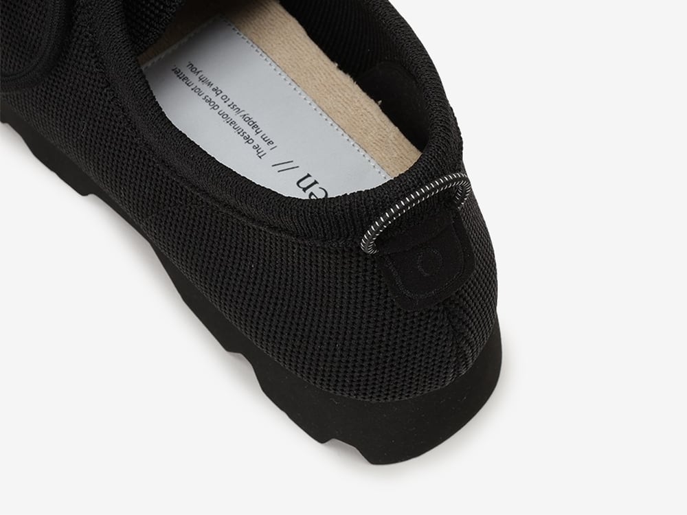 素材には、使用済みのペットボトルから生まれたリサイクル糸を採用。軽量でクッション性のあるニット地は、足入れのしやすさや歩きやすさも抜群で、まるで裸足のような心地よさ。環境に配慮するだけでなく、心や体への“心地よさ”にもこだわった一足です。