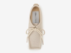角ばったつま先にマニッシュなデザイン、立体的な厚底ソールと太めのシューレースで足元に適度なボリューム感が生まれて。歩きやすさは保ちつつも、コンフォートシューズに見えない洗練感を演出しました。