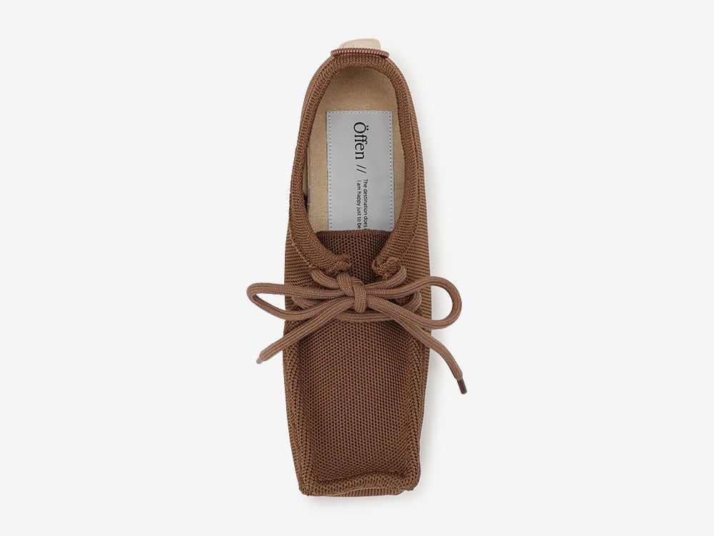 素材には、使用済みのペットボトルから生まれたリサイクル糸を採用。軽量でクッション性のあるニット地は、足入れのしやすさや歩きやすさも抜群で、まるで裸足のような心地よさ。環境に配慮するだけでなく、心や体への“心地よさ”にもこだわった一足です。