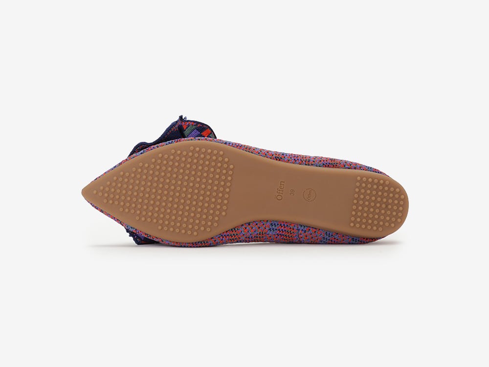 素材には、使用済みのペットボトルから生まれたリサイクル糸を採用。軽量でクッション性のあるニット素材は、足入れのしやすさや歩きやすさも抜群で、まるで裸足のような履き心地。環境に配慮するだけでなく、心や体への“心地よさ”にもこだわりました。