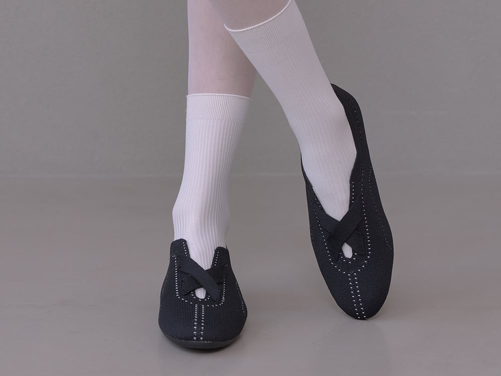 中央のクロスデザインでほどよく引き締め、シンプルながらも表情のある一足です。
