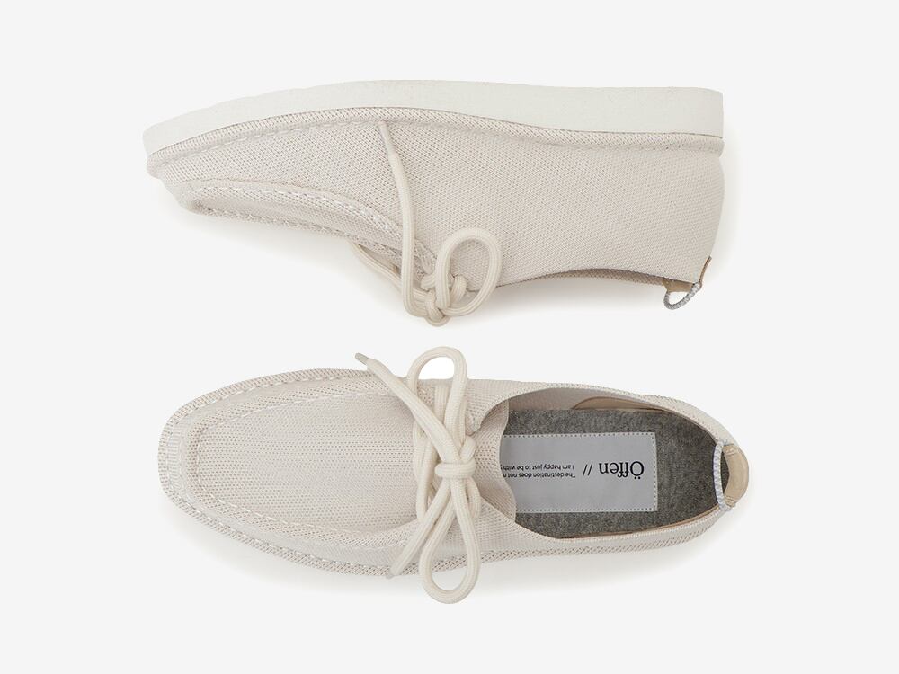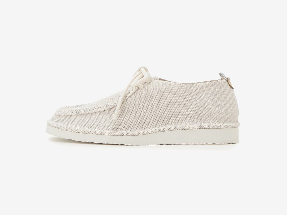張り出したエッジと立体感のあるモカステッチが足元に程よいボリュームを生み、デニムやワイドパンツなどのラフなスタイリングにも自然にマッチ。