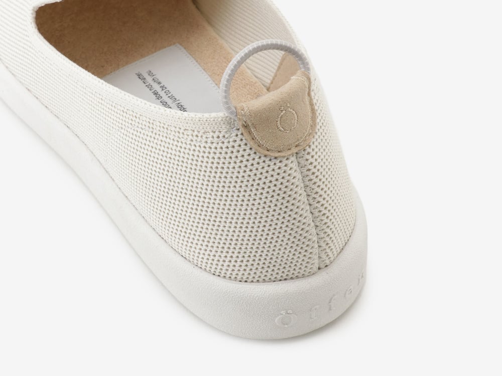 素材には、使用済みのペットボトルから生まれたリサイクル糸を採用。軽量でクッション性のあるニット素材は、足入れのしやすさや歩きやすさも抜群で、まるで裸足のような履き心地。環境に配慮するだけでなく、心や体への“心地よさ”にもこだわりました。
