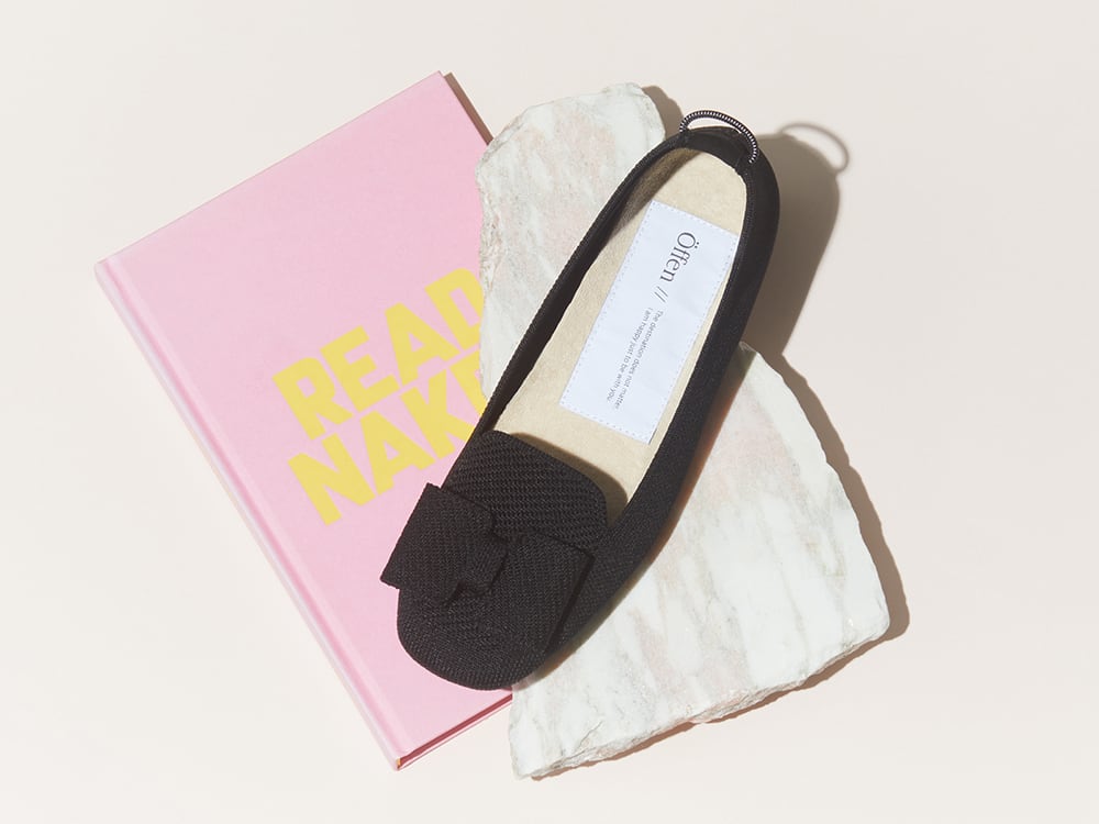 スクエアトゥのクラシックなシルエットに、小ぶりなリボンを品よく添えて。